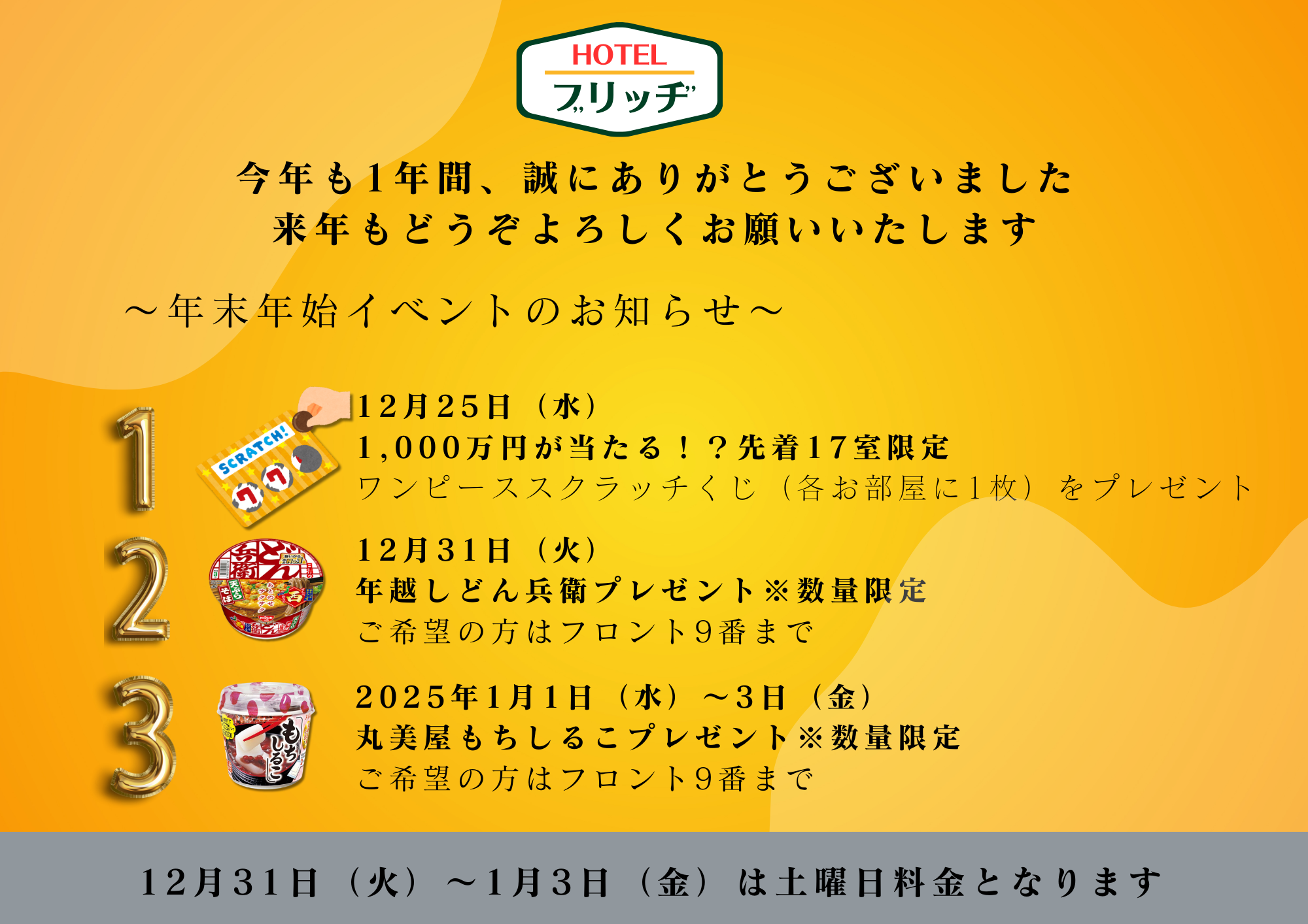 12月25日(水)から年末年始にかけて、 ささやかではありますが以下のキャンペーンを行います。